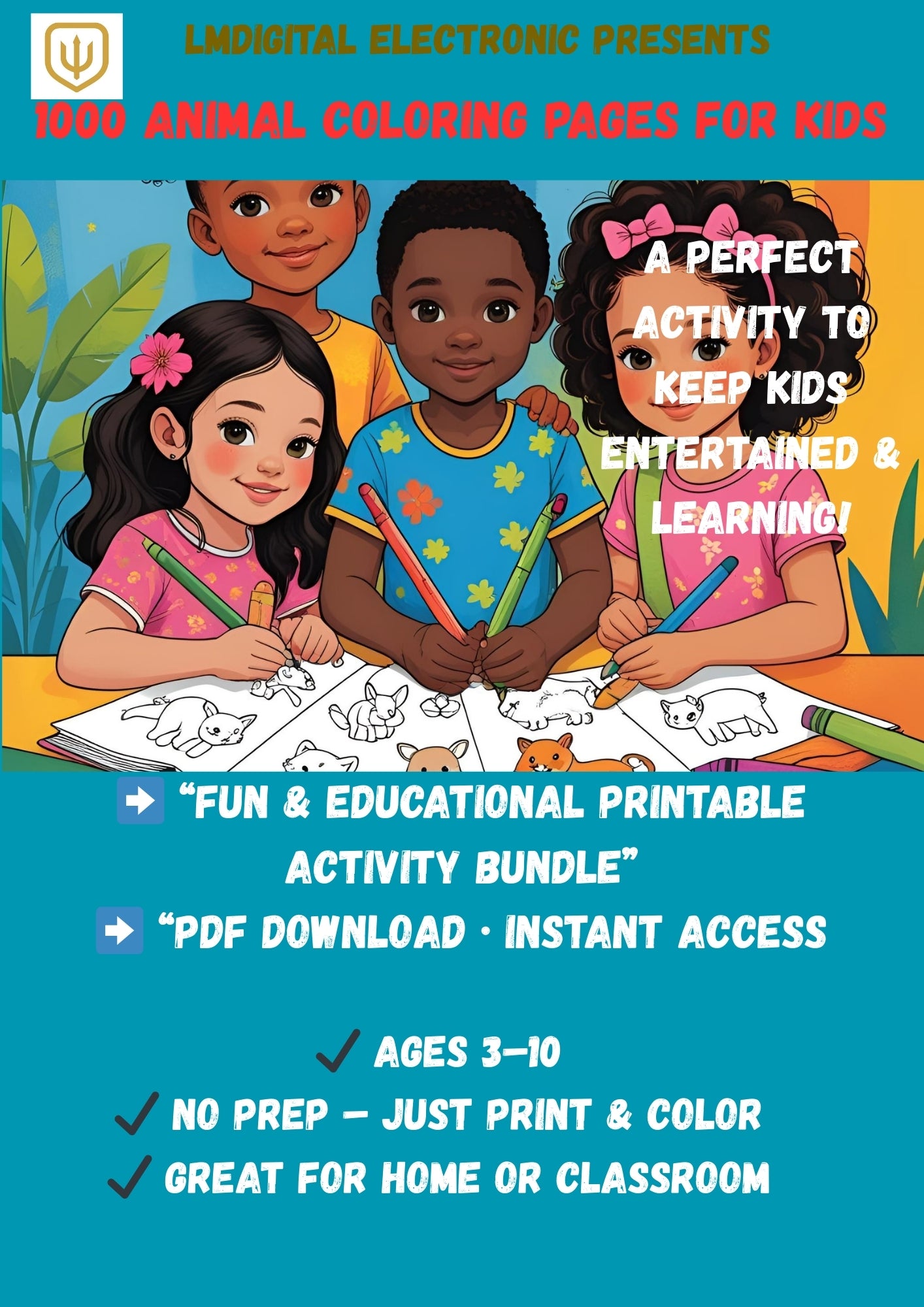 📄 1 high-quality PDF with 1000 animal-themed pages